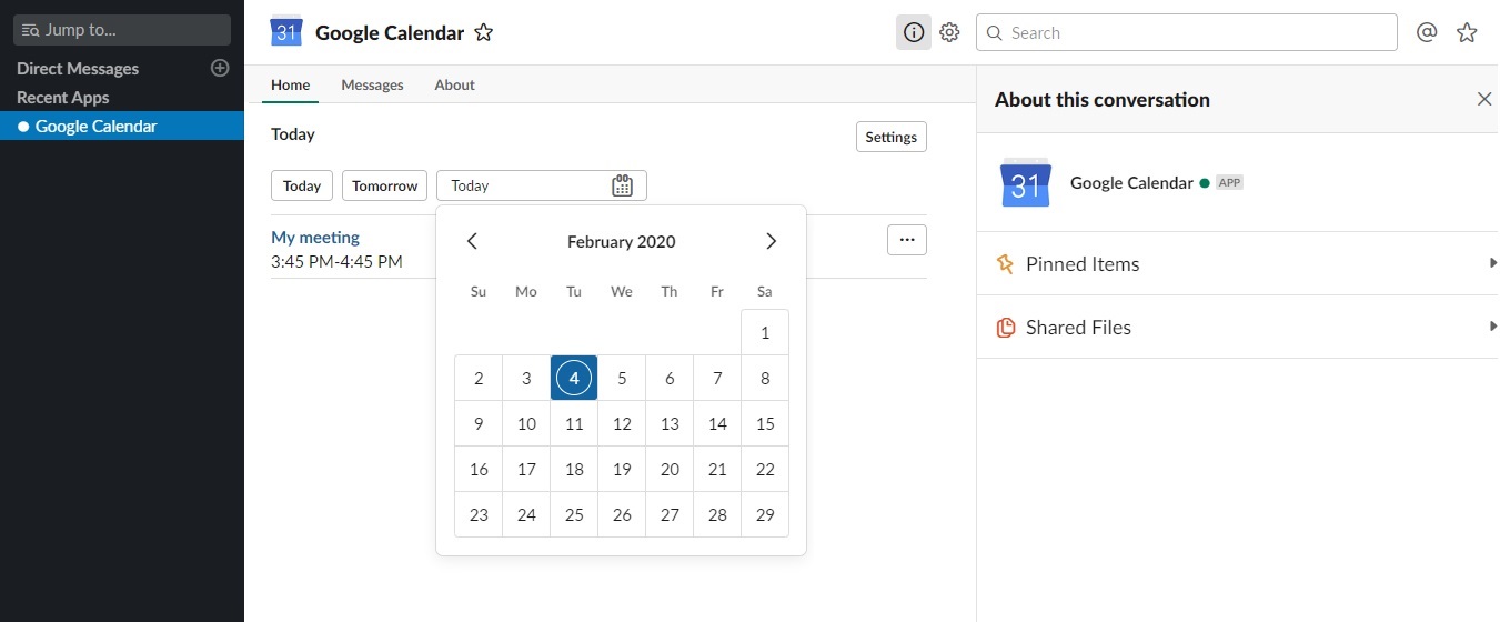 For example, we receive Slack notifications when there are actions in Google files, and we can leave comments, give access, or even open Google documents right in Slack. It is very convenient! Google Calendar is integrated with Slack, too, so we can be reminded about a meeting or postpone a meeting via Slack.